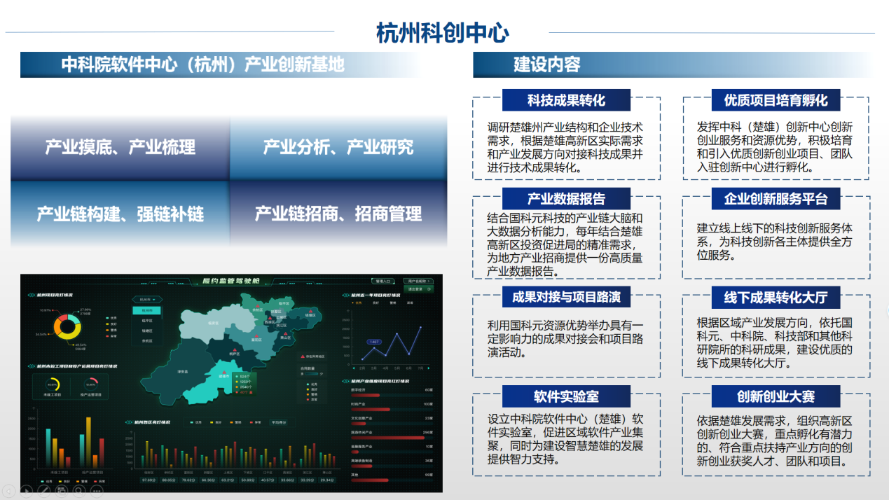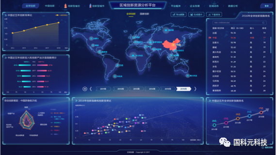 聚集区域创建产业创新服务综合体,创新资源要素,以区域创新体系、国家创新系统、创新资源配置、科技创新资源布局、产业集群等理论为基础,对区域创新体系的构建及其资源配置进行全面、系统梳理,搭建一级和相关联二级创新指标体系,运用数字地图等方式进行交互功能的可视化展示及报表分析。